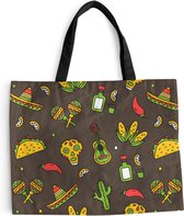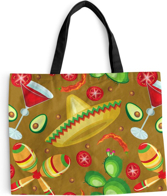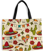Sac bandoulière - Sac de plage - Shopper Mexico - Sombrero - Motifs - 50x40 cm - Sac en coton
