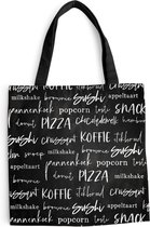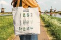Le sac est en tissu polyester avec une structure en coton. Le sac de transport a deux anses en coton. De plus, le sac à main est lavable à 30 degrés. Le sac est également léger et pliable, vous pouvez donc toujours l'avoir avec vous. Vous voulez vraiment ce client !