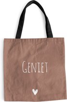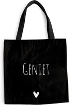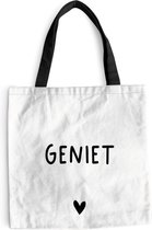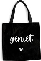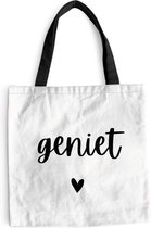 Le sac est en tissu polyester avec une structure en coton. Le sac de transport a deux anses en coton. De plus, le sac à main est lavable à 30 degrés. Le sac est également léger et pliable, vous pouvez donc toujours l'avoir avec vous. Vous voulez vraiment ce client !