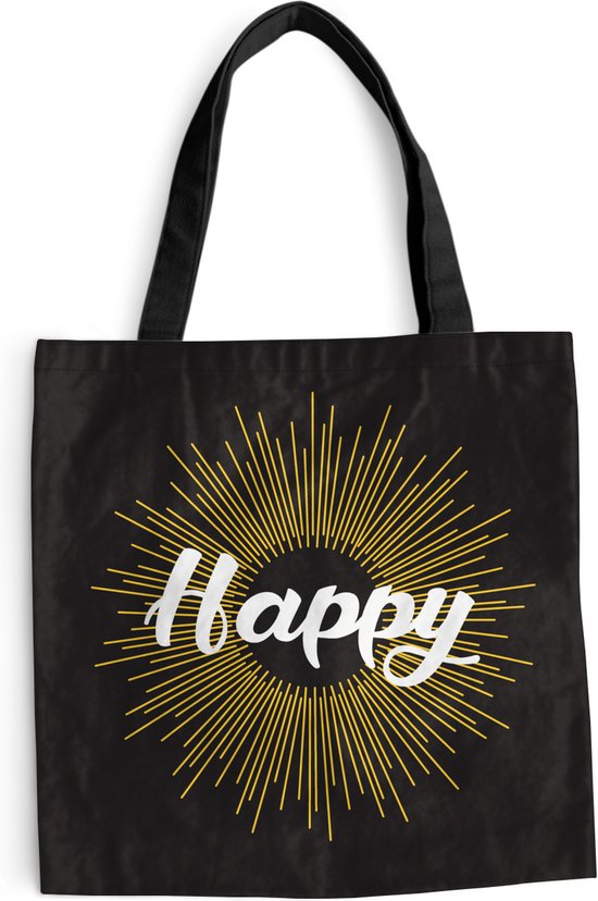 Sac bandoulière - Sac de plage - Shopper Proverbes - Happy - Citations - 40x40 cm - Sac en coton