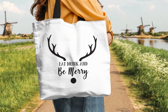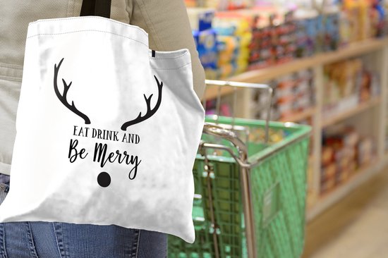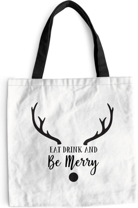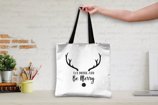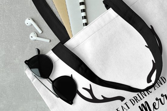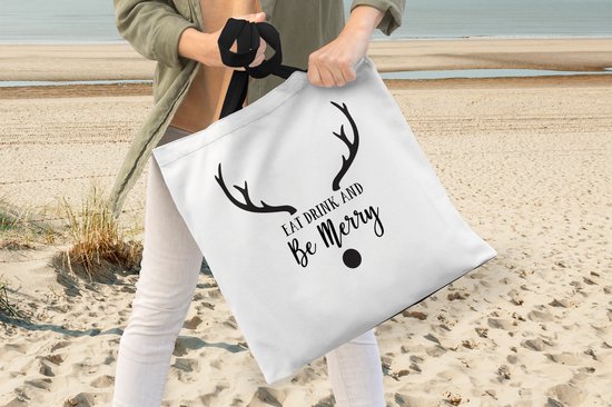 Sac bandoulière - Sac de plage - Shopper Quote Eat, Drink and be Merry Christmas décoration murale noir sur blanc - 45x45 cm - Sac en coton