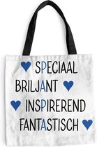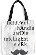 L'imprimé donne au sac un design moderne. Cela donne au sac un look élégant et le fait ressortir encore plus. De plus, vous êtes également soucieux de l'environnement. Il vaut mieux utiliser son eigen sac que de continuer à demander un sac en plastique.