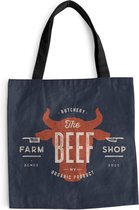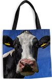 Sac bandoulière - Sac de plage - Shopper Vache - Blauw - Animaux - 40x40 cm - Sac en coton