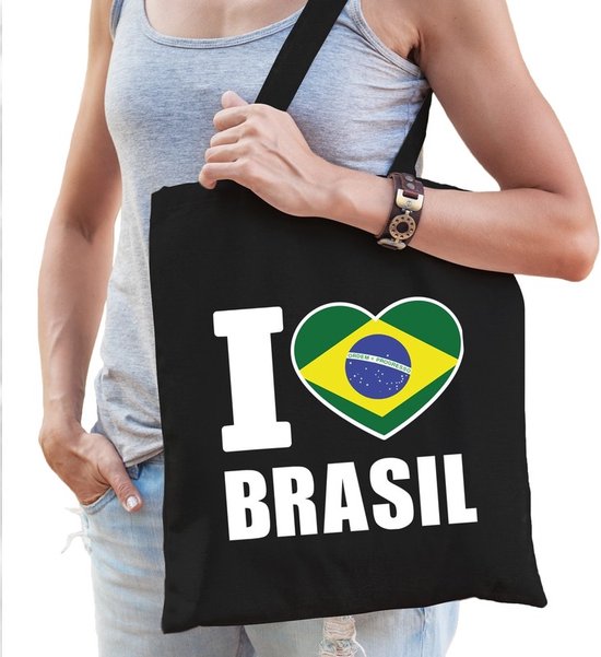 Sac Brésil en coton I love Brasil noir - 10 litres - Sac cadeau pays brésilien