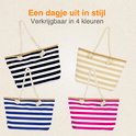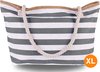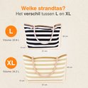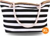 Plusieurs couleurs : Le Beach Bag Ibiza XL est disponible en trois couleurs différentes Zwart- Wit (Rayé), Grijs- Wit (Rayé) Blauw- Wit (Rayé). Beige- Wit (rayé)