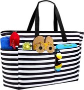 Sac de plage XXL-famille, sac de plage rayé femme grand avec fermeture éclair, sac de plage imperméable et résistant au sable, sac fourre-tout pliable, sac de bain pour voyage à la plage