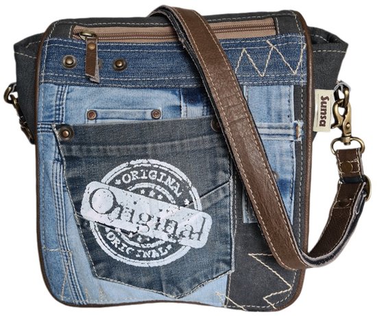Sac - Denim- Toile - Cuir- jeans recyclés - femme - homme - Rétro - Vintage - Streetwear - 18 x 23 x 2 cm - Sunsa