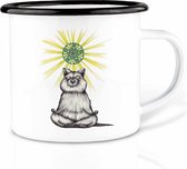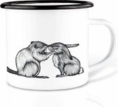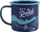Tasses à expresso en émail robuste . Tous les deux tasses à expresso en émail ont des inscriptions telles que «l'aventure commence» et «le matériel des messieurs». Perfect comme cadeau pour homme ou à emporter avec vous dans le camping-car.