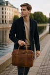 Sacoche de luxe en cuir pour ordinateur portable 15 pouces Lundholm - Sac de travail marron - Sac à bandoulière pour homme - Sac de travail en cuir véritable - Luxe - Cognac