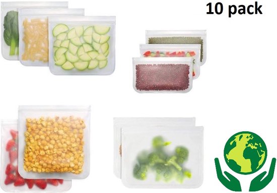 Sacs de conservation alimentaire réutilisables - Sacs de congélation - Sacs de conservation alimentaire en Siliconen - lot de 10 pièces - sacs sous vide