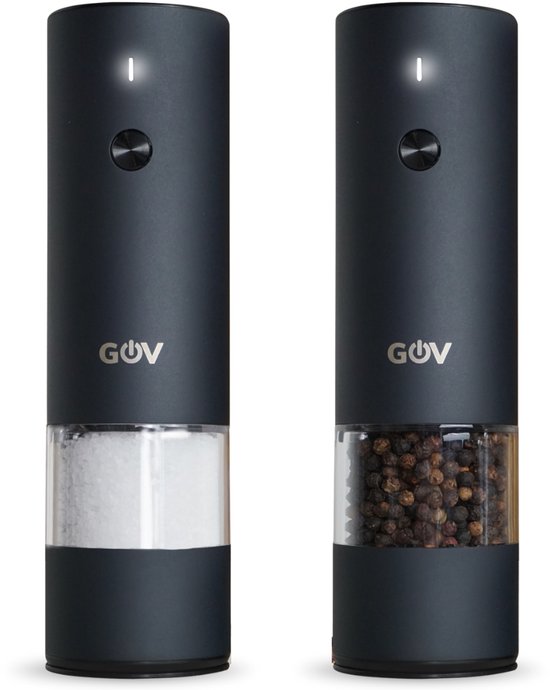 Salière et poivrière électrique GOV - Acier inoxydable régulier - Rechargeable - Édition noire - Zwart - Moulin à poivre - Cadeau - Acier inoxydable