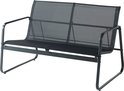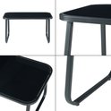 - Acier, verre trempé (5 mm) et tissu textilène (70% PVC, 30% polyester)