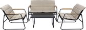 L'ensemble de salon de jardin 4 pièces est un ajout élégant à tout espace extérieur et constitue un endroit idéal pour se détendre. Il se compose d'une table élégante, d'un banc confortable pour deux personnes et de deux chaises confortables, qui créent ensemble une atmosphère lounge accueillante.