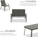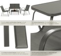 Grâce au cadre en acier revêtu de poudre, l'ensemble convainc non seulement par une énorme stabilité et une capacité de charge énorme, mais garantit également une durabilité maximale en combinaison avec le tissu textilène respirant, hydrofuge et durable. Les pieds en plastique antidérapants et protecteurs du sol assurent également une grande stabilité.