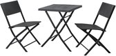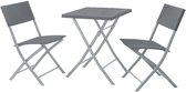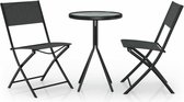 Salon de jardin The Living Store - Textilène - 2 Chaises - Acier thermolaqué - Grijs/ Zwart - Table Ø50x71 cm