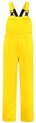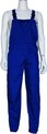 Salopette unisexe bleue avec deux poches latérales et une poche poitrine avec fermeture par bouton-pression. La salopette est faite de 65% polyester / 35% coton et possède des bretelles réglables.