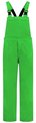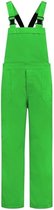 Salopette unisexe verte avec deux poches latérales et une poche poitrine avec fermeture par bouton-pression. La salopette est faite de 65% polyester / 35% coton et possède des bretelles réglables.