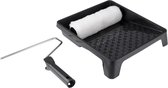Le kit de peinture murale Sam turbo anti-éclaboussures 5 pièces convient à toutes les peintures murales et contient un rouleau à peinture murale de 18 cm, un rouleau à peinture murale de 12 cm, un bac à peinture et deux supports soft grip de 18 cm et 10 cm.