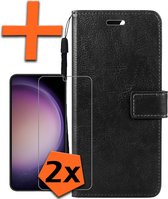 Samsung S23 Cover Bookcase Flip Case Book Cover With 2x Screen Protector Samsung Galaxy S23 Case Book Case - Zwart