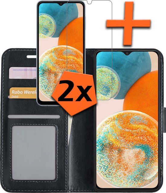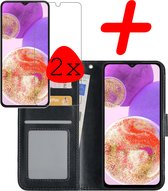 Samsung A23 Cover Bookcase Flip Case Book Cover With 2x Screen Protector - Samsung Galaxy A23 Cover Book Case - Zwart