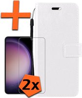 Samsung S23 Cover Bookcase Flip Case Book Cover With 2x Screen Protector Samsung Galaxy S23 Case Book Case - Wit