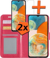 Samsung A23 Cover Bookcase Flipcase Book Cover Avec 2x Protecteur D'écran - Samsung Galaxy A23 Cover Book Case - Rose Foncé