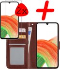 Samsung Galaxy A33 Case Bookcase 2x Screen Protector - Samsung Galaxy A33 Case Cover Cover - Samsung Galaxy A33 Screen Protector 2x - Marron