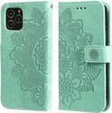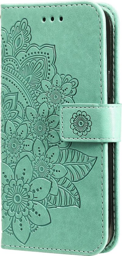 Samsung Galaxy S10 Book avec Motif - Porte-Cartes - Portefeuille - Imprimé Fleur - Samsung Galaxy S10 - Turquoise