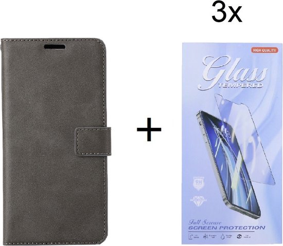Samsung Galaxy S22 Plus Bookcase Grijs - étui portefeuille avec protection d'écran en Glas 3 pièces - ZT Accessoires