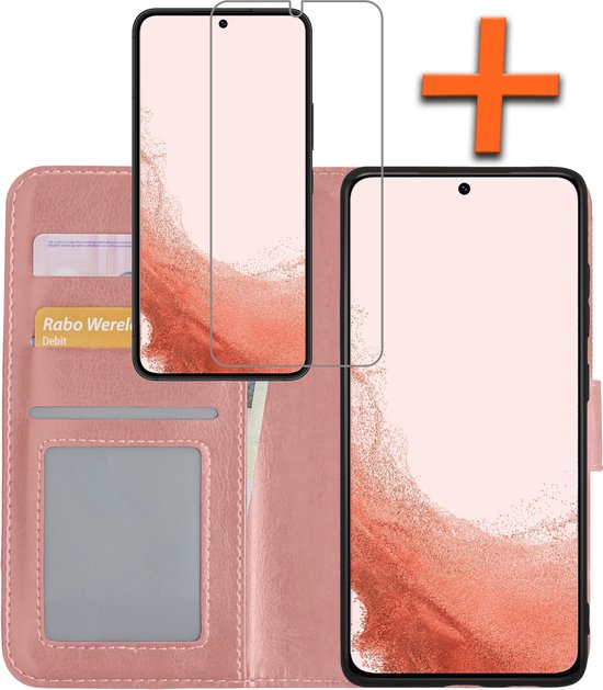 Samsung Galaxy S22 Ultra Case Book Bookcase avec protecteur d'écran - Samsung Galaxy S22 Ultra Screen Protector - Samsung Galaxy S22 Ultra Book Case avec protecteur d'écran Or Rose