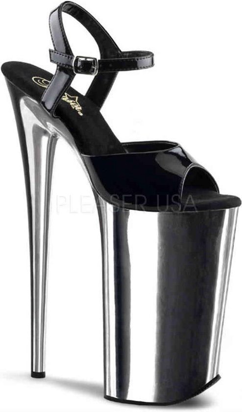 Sandales à bride cheville Pleaser, chaussures de pole dance -42 chaussures- BEYOND-009 chaussures de pole dance Zwart/argent