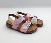Sandales roses pour filles avec paillettes, perles et strass de Blue Box. Fabriquées en simili cuir avec une semelle profilée robuste. Ces belles sandales ont une sangle élastique à la cheville pour un enfilage facile.