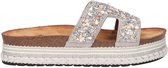 Sandales pour femmes à talons bas pour femme | Argent | Peeptoe | Diamante | Taille 39 EU sandales talon bas dames