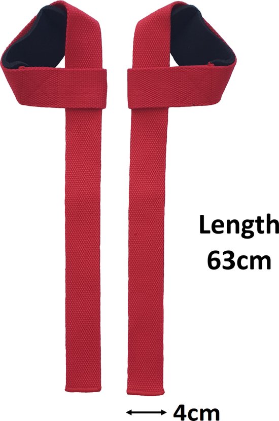 Sangles de dynamophilie - Sangles de soulevé de terre - Sangles de levage de Protection du poignet - Sangles de levage pour le fitness - 2 Pièces - Rouge
