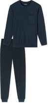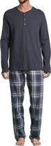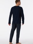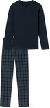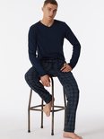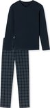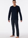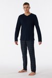 SCHIESSER Ensemble pyjama Fine Interlock - pyjama homme long interlock col V à carreaux bleu nuit - Taille : S