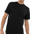 Lot de 2 T-shirts noirs. Ce t-shirt noir est composé à 100% de coton, ce qui le rend très doux au toucher. Il se forme bien autour de votre corps, résultant en un ajustement parfait avec suffisamment de liberté de mouvement. Ce T-shirt a des manches courtes et un col rond. De cette façon, il peut être porté agréable et décontracté - mais il est également idéal comme maillot de corps pour sous une chemise, un polo ou un pull.