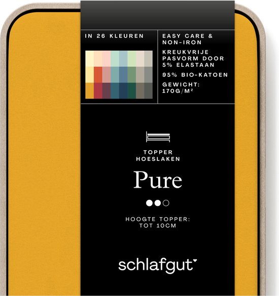 schlafgut Pure Topper Jersey Hoeslaken Eenpersoons – 90x200 cm - Matrashoogte tot 10cm - Geel