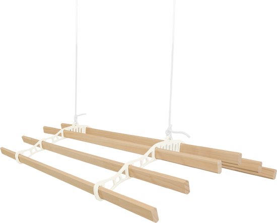 • Pin laqué de haute qualité et fonte ivoire• Système de poulies traditionnel et pratique• Espace de séchage spacieux avec 6 lattes• Convient aux plafonds plats et inclinés• Installation facile avec le kit de montage GRATUIT