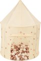 Caractéristiques : - Motif de cœurs et d'étoiles délicats sur fond beige - Rapide et facile à mettre en place, la forme est maintenue par un ressort et des tubes élastiques en métal - Emballé dans un étui de transport pratique à fermeture éclair - Haute résistance à la déchirure et à l'abrasion - Facile à nettoyer make - Convient aux enfants à partir de 3 ans - Le gazebo est disponible avec des boules ou en produit autonome Dimensions :