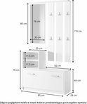 Six cintres sont placés sur un panneau simple et de bon goût, surmonté d'une étagère pratique sur laquelle vous pouvez accrocher des vestes, des manteaux et des parapluies. L'ensemble Yesfir comprend de l'espace pour une armoire à chaussures fonctionnelle pouvant accueillir environ 8 paires dans deux compartiments. Le placard dispose d'étagères pour les petits objets tels que les chapeaux, les gants ou la correspondance. L'ensemble est complété par un grand miroir à la surface cristalline.