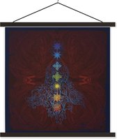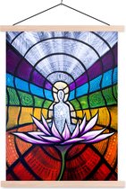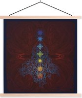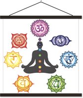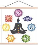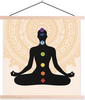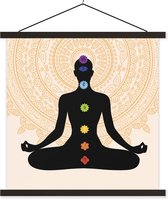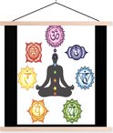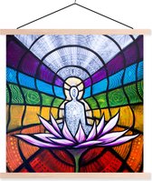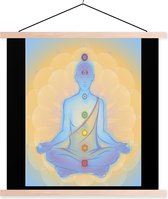 Sept chakras autour d'une silhouette méditante affiche textielposter lattes vierges 120x120 cm - Tirage photo sur plaque scolaire (décoration murale salon / chambre)
