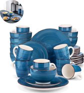 Service de table de Luxe LBB – 32 pièces – 8 personnes – Porcelaine – Service d'assiettes – Assiettes plates – Assiettes à dessert – Bols – Mugs – Bols – Multicolore