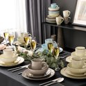 L'ensemble de vaisselle de Luxe LBB est une collection de 32 pièces en grès de haute qualité, parfaite pour créer une table raffinée et élégante. Cet ensemble de vaisselle en céramique est conçu avec le souci du détail et offre tout ce dont vous avez besoin pour une expérience culinaire complète. L'ensemble comprend des assiettes plates, des assiettes à dessert, de généreux bols de 800 ml et des tasses, idéales pour servir des repas et des boissons. Le matériau en grès offre durabilité et aspect robuste, tandis que la finition subtile ajoute une touche d'élégance.