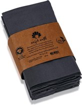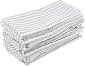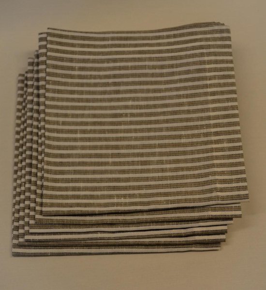 Lot de 6 serviettes à rayures noires / grises. 50% lin, 50% coton. Taille 40 x 40 cm.