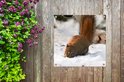 L'écureuil se trouve dans un paysage enneigé en hiver. Derrière le rongeur se tient un loup.À propos de GreatGardenPosters