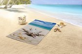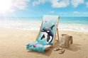Les serviettes de plage sont en tissu éponge 100% polyvelour et sont disponibles dans les designs actuels.