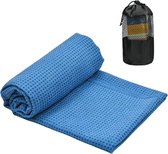 Serviette YOGA "GRIP" avec points en silicone sur le dessous, taille 183 x 61 cm, couleur bleu, légère, pour plus d'hygiène, super absorbante, sèche rapidement, lavable, parfaite pour voyager, toucher soft , matière recyclée. Prise en main parfaite !