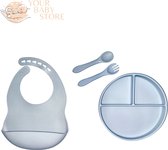 Set BabyHap - assiette 3 pièces - couverts - gobelet - bleu bébé - silicone - YOURBABYSTORE