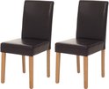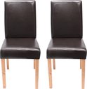 Set de 2 Chaise de salle à manger Chaise de cuisine Littau ~ Cuir, marron, pieds clairs