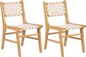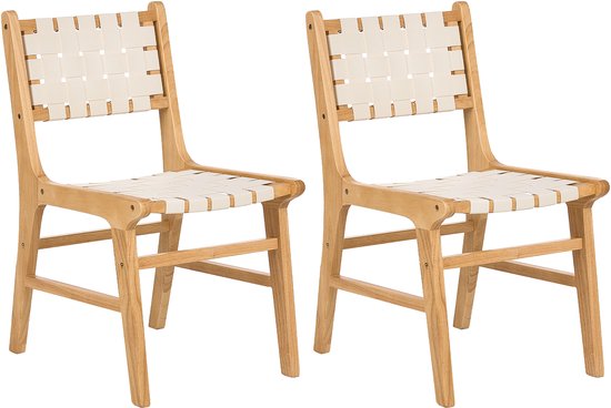 Chaises avec cannage en simili cuir. Complétez votre salle à manger avec cet ensemble de 2 chaises élégantes. Le cadre est fabriqué en bois d'hévéa léger et durable, ce qui garantit une expérience d'assise stable et robuste. Les sièges et les dossiers des chaises sont tissés avec d'épaisses sangles en similicuir dans une teinte beige clair et chaude, créant un look d'inspiration rétro.